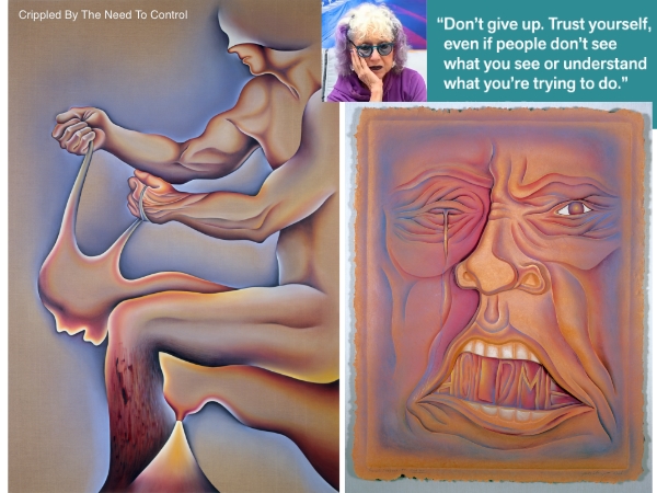 The show was unusual because Judy Chicago had persuaded the (excellent) curator to show it as a true retrospective — newest work first, working back to her earliest work. It was staggeringly clear how hard Judy Chicago worked to be taken seriously by the museum-level art world and how difficult the male-dominated art establishment made her life. The range of her work and materials is impressive and the newest stuff is the best. Here are a few pieces I found especially moving.