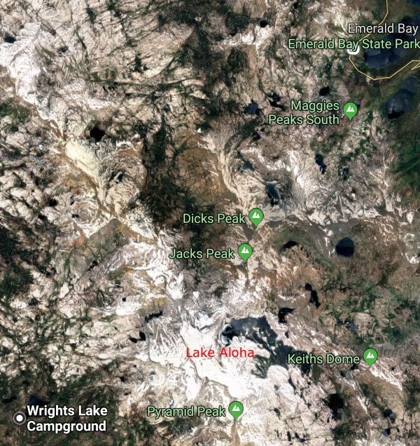 Dark Lake is just above the Rockbound Trailhead and has a nice, small, beach put-in right by the road. One would have to move the vehicle to the nearby parking. Notice the little squares on the map on the north side of Dark Lake. These are summer homes that have been grandfathered in by the Eldorade National Forest. There is a nice path around Dark Lake, pictured below.