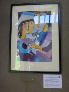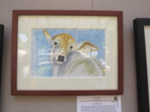 My favorites. Click on the image the little fawn to get to the five thumbnail images. From there, click on any image to reach the slideshow. In the slideshow, lick on any image to get the big honkin’ image file. Ellen Sennerwald is in my watercolor pencils class and she brought in this drawing of a fawn last week, without the blue background. It looked very subtle and refined with the white (blank) background. The entire class discussed color and contrast and I was delighted to see this. I met Ellie just a few weeks ago but I have known her husband for years through Senior Peer Counseling. Ezra, the tractor watercolorist, is a hiking buddy, Lorna is a classmate at the gym and Rhea was my singing coach in Threshold and teaches the alcohol inks that she uses.