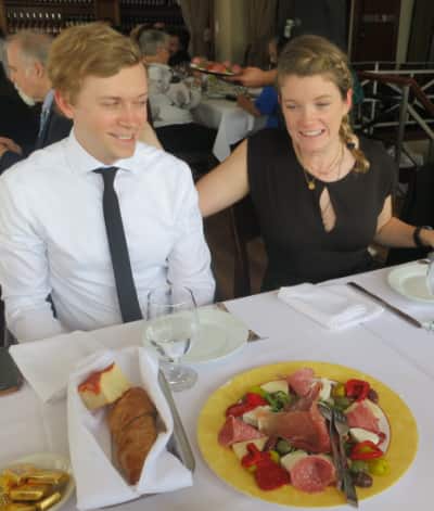 The massive stroke and sudden death of my first cousin Mary Catherine in Staten Island on May 22 would bring the Milwaukee relatives to the funeral of a family member from New York City with whom I actually did have a life-long relationship. I packed up and flew into Newark and spent three nights in an airport motel, visiting Staten Island every day and spending hours hanging out with my cousins. After the funeral, the family hosted a lovely lunch at Cielo Italian restaurant in Staten Island. Here is a screenshot of me photobombing my bad-brother Christy. Cousin Danny Tank and Sara Cicollela are in the photo.