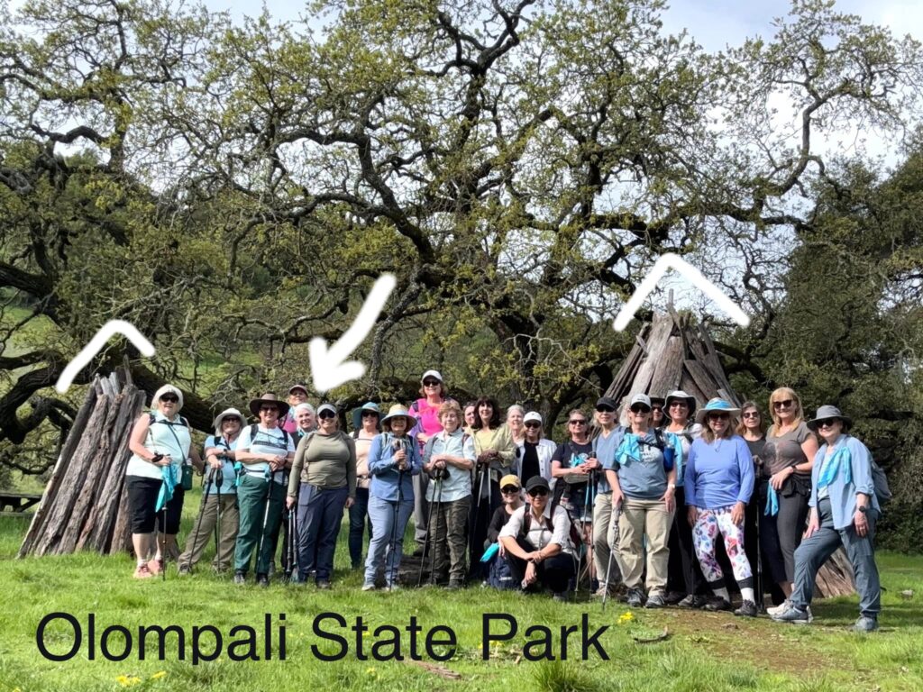 Hip Chicks Spring Flower Hike Olompali – Miwok Village – Wooden Teepees Marked