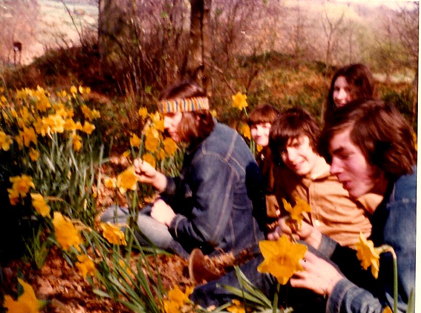 The daffodil photo was taken at Trent Park, London, where Dad was working (before Chris worked there years later) during Dad’s and Gill’s honeymoon when Peggy was babysitting. MR said, “I think Christy is wearing a headband knitted by Timmy. (No, seriously, Timmy used to knit with multi-colored yarn.) And we were laughing because Chris was talking into the daffodil as if it were an old telephone.