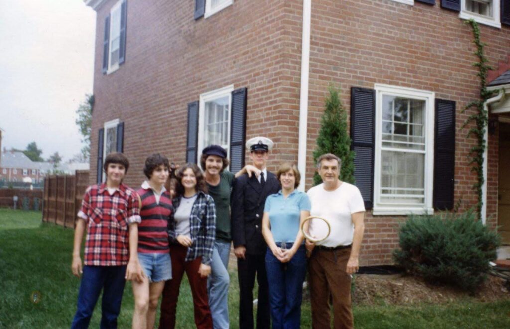 Franky said, “The photo with Chris in the Navy uniform was taken in Shirlington, VA where we briefly lived [when we returned from France]. I was a senior at Bishop Ireton boys school and worked stock at Sloan’s Furniture. Later Dad and Gill moved again and I was housed by the Richardson family around the corner until I finished high school and went to Radford U.”