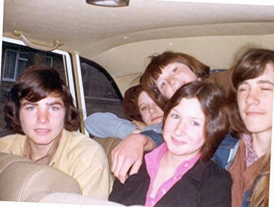 Five in back + Peg & Bill Hutch in front. The steering wheel was on the English side, so that must be Peg’s long hair on Jeremy, because I remember Hutch was driving.The girl to Greg’s right? Sandra Young. Last week she What’sApp’d about Tea for the Tillerman, a Cat Stevens album we used to listen to at that time 🎵”I’m being followed by a moon shadow” 🎶